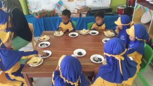 SURABAYAONLINE.CO, Sampang – Siswa KB dan TKIT Nurul Hidayah Kabupaten Sampang bersama Sari Roti menggelar kegiatan “Gerakan Sarapan Padat Bernutrisi” sekaligus lomba Menghias Sari Roti di sekolah TKIT Nurul Hidayah Sampang, Sabtu (16/10/2021).