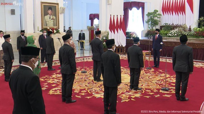 “Terlebih dahulu saya akan bertanya kepada saudara-saudara. Bersediakah saudara diambil sumpah janji menurut agama masing-masing?” tanya Jokowi.Belasan duta besar dilantik berdasarkan Keputusan Presiden (Keppres) 127B/2021 tentang Pengangkatan Duta Besar Luar Biasa dan Berkuasa Penuh Republik Indonesia.
