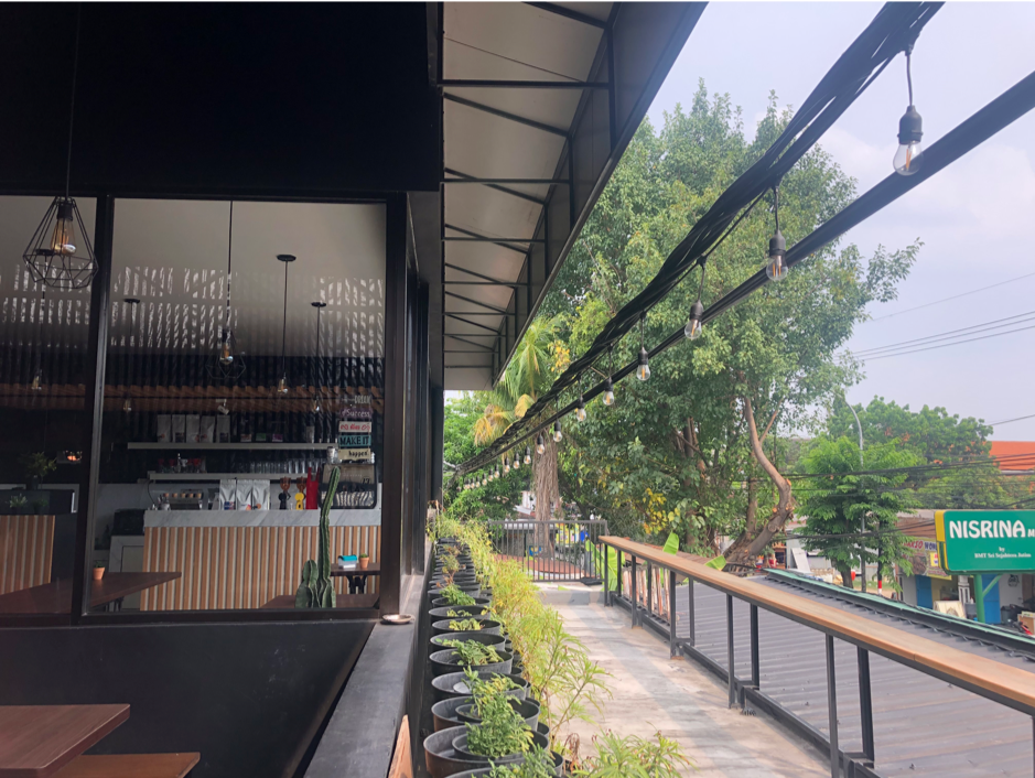 Telulas Cafe berada di atas bangunan Telulas Barbershop, cafe ini terlihat mungil di tepi jalan namun tetap terlihat estetik.