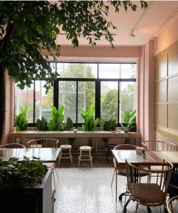indoornya sangat hangat dan nyaman, dengan suasana pastel yang sangat asik. Sementara untuk area outdoor tampak lebih minimalis dengan hiasan bebatuan taman.