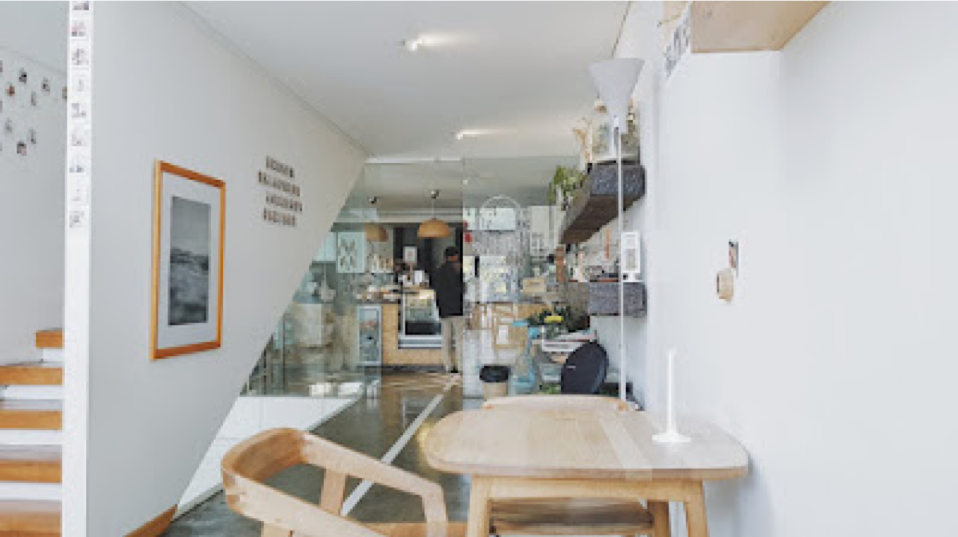 Terlihat sang pemilik menggabungkan konsep scandinavian style dengan konsep green alias bermain dengan beberapa tanaman, termasuk penggunaan full glass untuk meminimalisir pemakaian lampu. Caffee ini didominasi oleh suasana yang sejuk karena catnya berwarna putih dengan ornamen kayu dan kaca disekelilingnya.