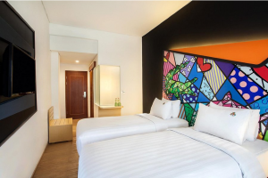 Nahhh untuk yang hobi travelling dengan sahabat atau keluarga, jangan lupa untuk mencoba kamar love. Di sini terdapat satu ranjang berukuran double dan twin, bunkbed, dua televisi di setiap ruangan, ukuran kamar mandi lebih luas, serta termasuk paket breakfast untuk lima orang.