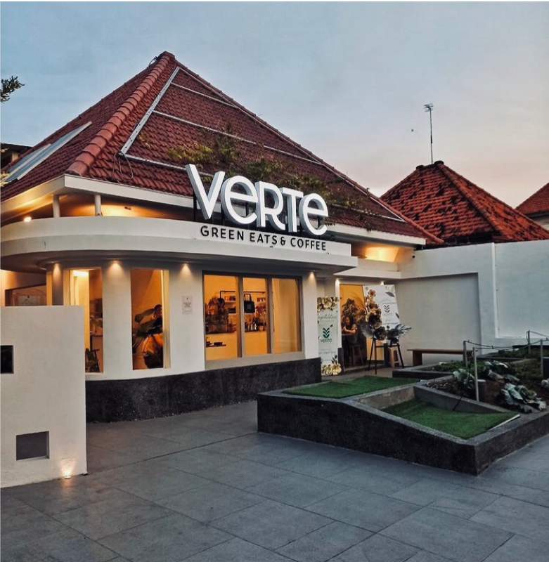 Saat memasuki Verte Cafe kamu akan melihat bangunan yang serba putih dan bersih. Terdapat area outdoor dan indoor di sini. Untuk area outdoor terlihat cukup luas dengan banyak tanaman dan pepohonan yang membuat suasana begitu asri.