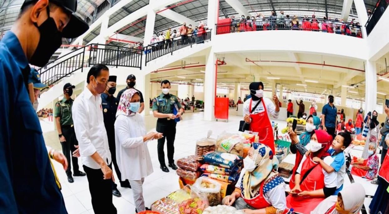 Dalam kesempatan yang sama, Presiden Jokowi juga memberikan bantuan tunai bagi para pedagang kaki lima dan warung yang berjualan di area luar pasar.