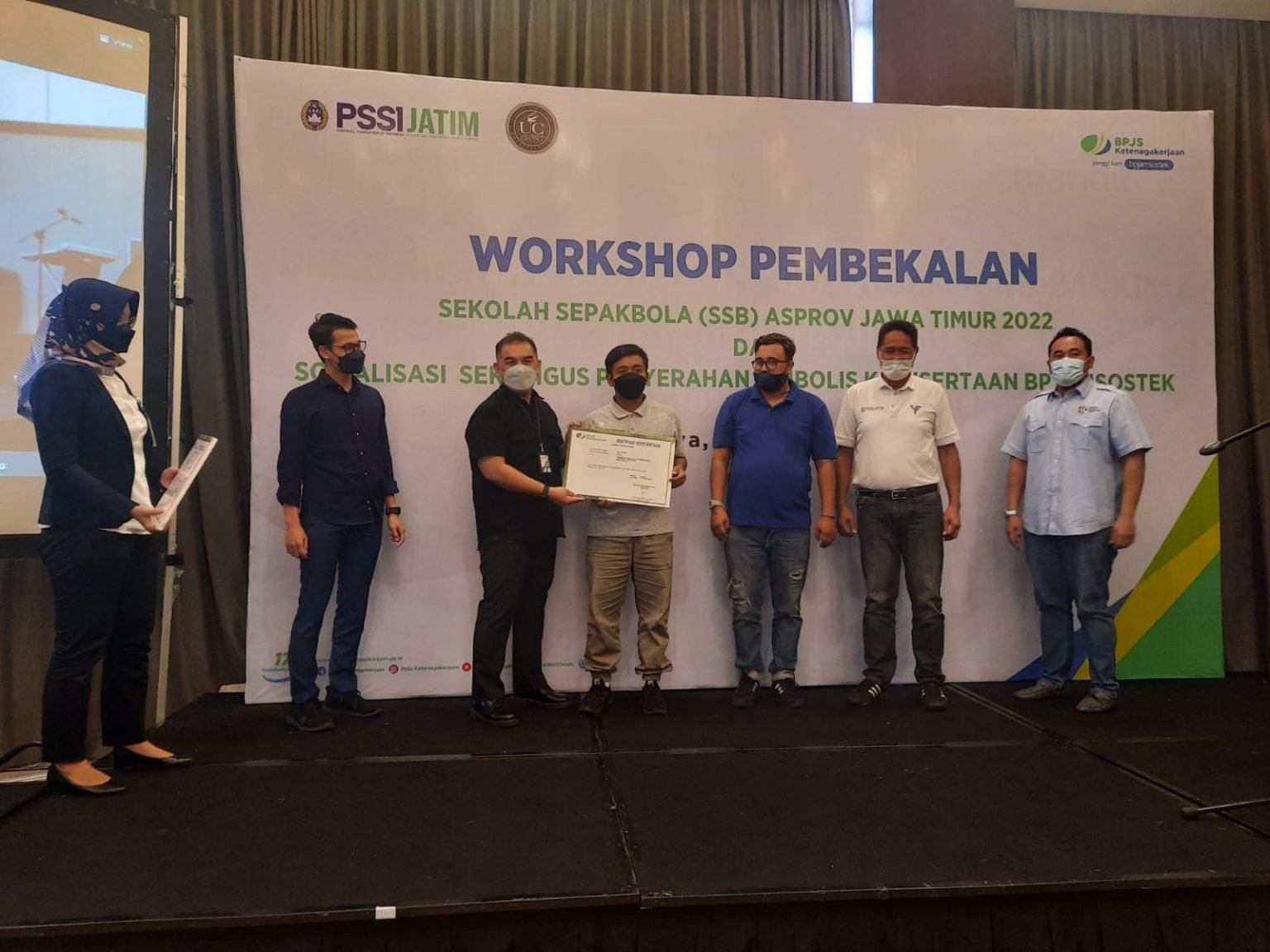 Dalam kesempatan yang sama juga dilakukan sosialisasi sekaligus penyerahan simbolis kepesertaan BP Jamsostek bagi seluruh anggota SSB di Jatim, mulai dari pemain, pelatih dan ofisial maupun pengurus.