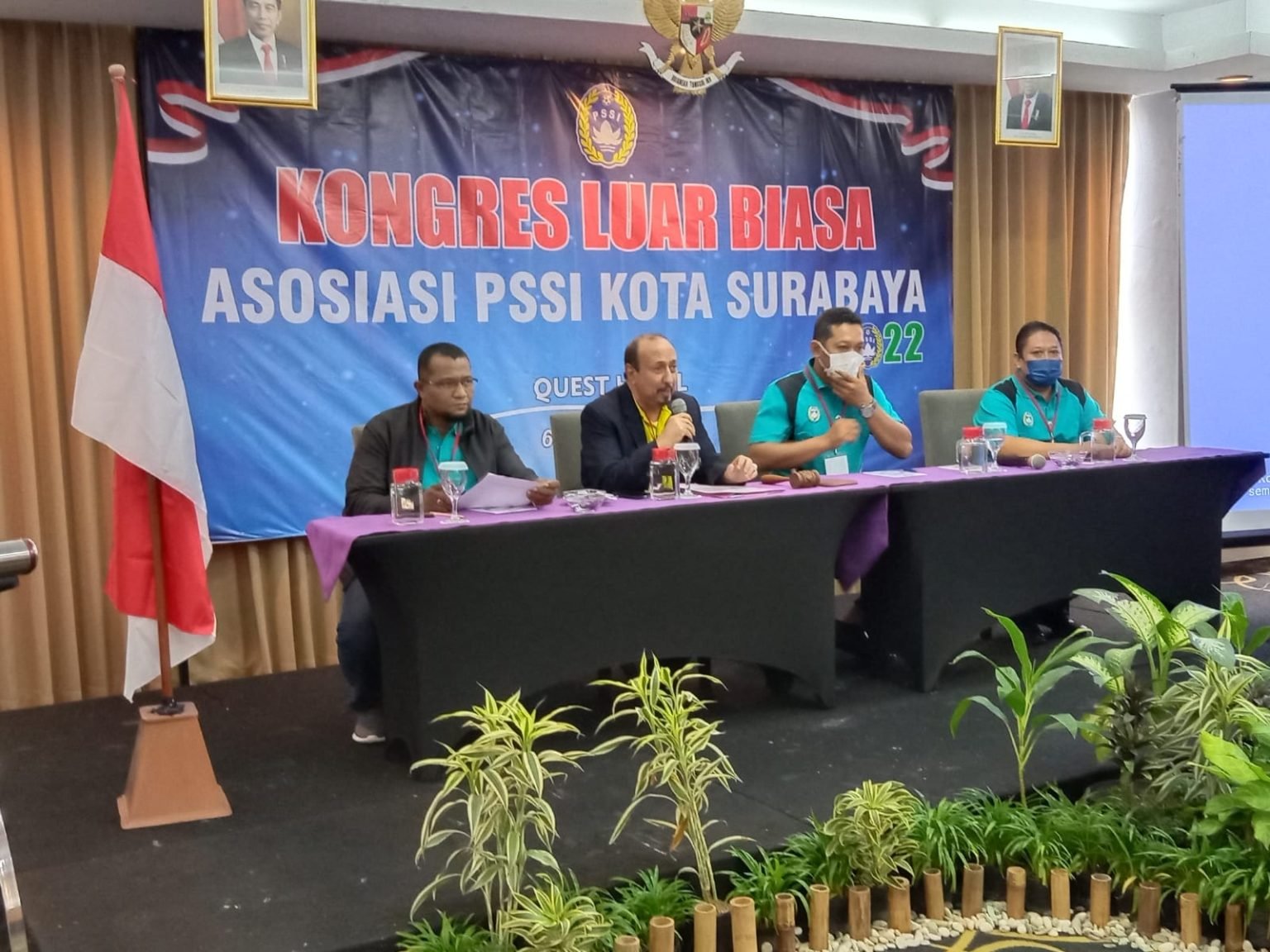 SURABAYAONLINE.CO – Mauritz Bernhard Pangkey terpilih menjadi Ketua Umum Asosiasi Kota (Askot) PSSI Surabaya periode 2022-2026 dalam kongres di Quest Hotel Darmo Surabaya, Minggu (6/3). Mauritz berjanji akan menggelar kompetisi kategori senior dan memperhatikan nasib pelatih.