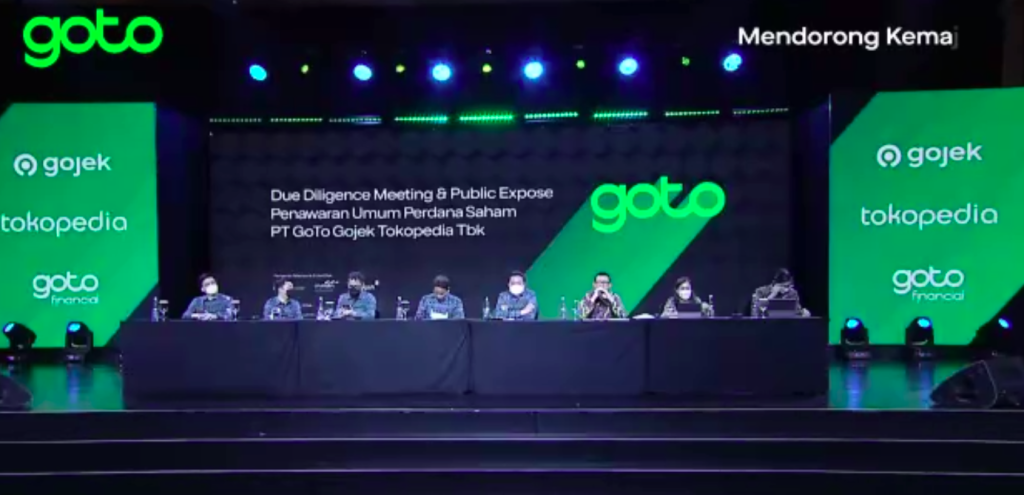 GoTo telah menunjuk PT Indo Premier Sekuritas, PT Mandiri Sekuritas, dan PT Trimegah Sekuritas Indonesia Tbk sebagai penjamin pelaksana emisi efek atau joint lead underwriters untuk IPO. Rincian IPO telah diumumkan pada acara Paparan Publik yang berlangsung hari ini, Selasa, 15 Maret 2022.