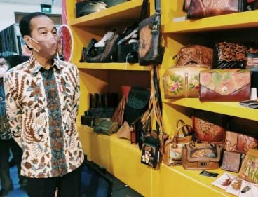 SURABAYAONLINE.CO – Luar biasa prodak UMKM Sidoarjo,Presiden RI Joko Widodo memuji hasil kerajinan kulit UMKM Sidoarjo yang dipamerkan pada event 22th Jakarta Internasional handycraft Trade Fair (INACRAFT 2022) yang di gelar 23 – 27 Maret 2022 di Jakarta Convention Center. Acara perhelatan pameran industri kreatif tanah air itu dibuka oleh Presiden RI Joko Widodo Rabu (23/3/2022).