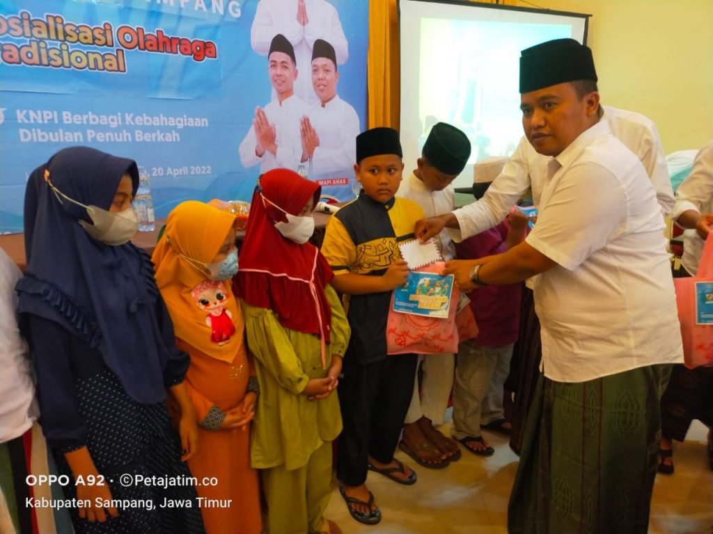 Pada moment tersebut, Ketua DPD KNPI Sampang, Nurul Huda memanfaatkannya untuk berbagi kepada 20 anak yatim setempat. Adapun menurutnya, giat tersebut merupakan puncak acara dari kegiatan, yang dilakukan DPD KNPI Sampang selama bulan puasa saat ini.