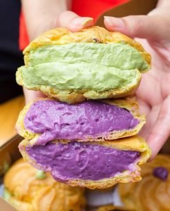 Handa membuat varian enam rasa pada kue sus, cookies cream, milo, matcha, taro, vanilla dan double choco coklat,” terangnya.
