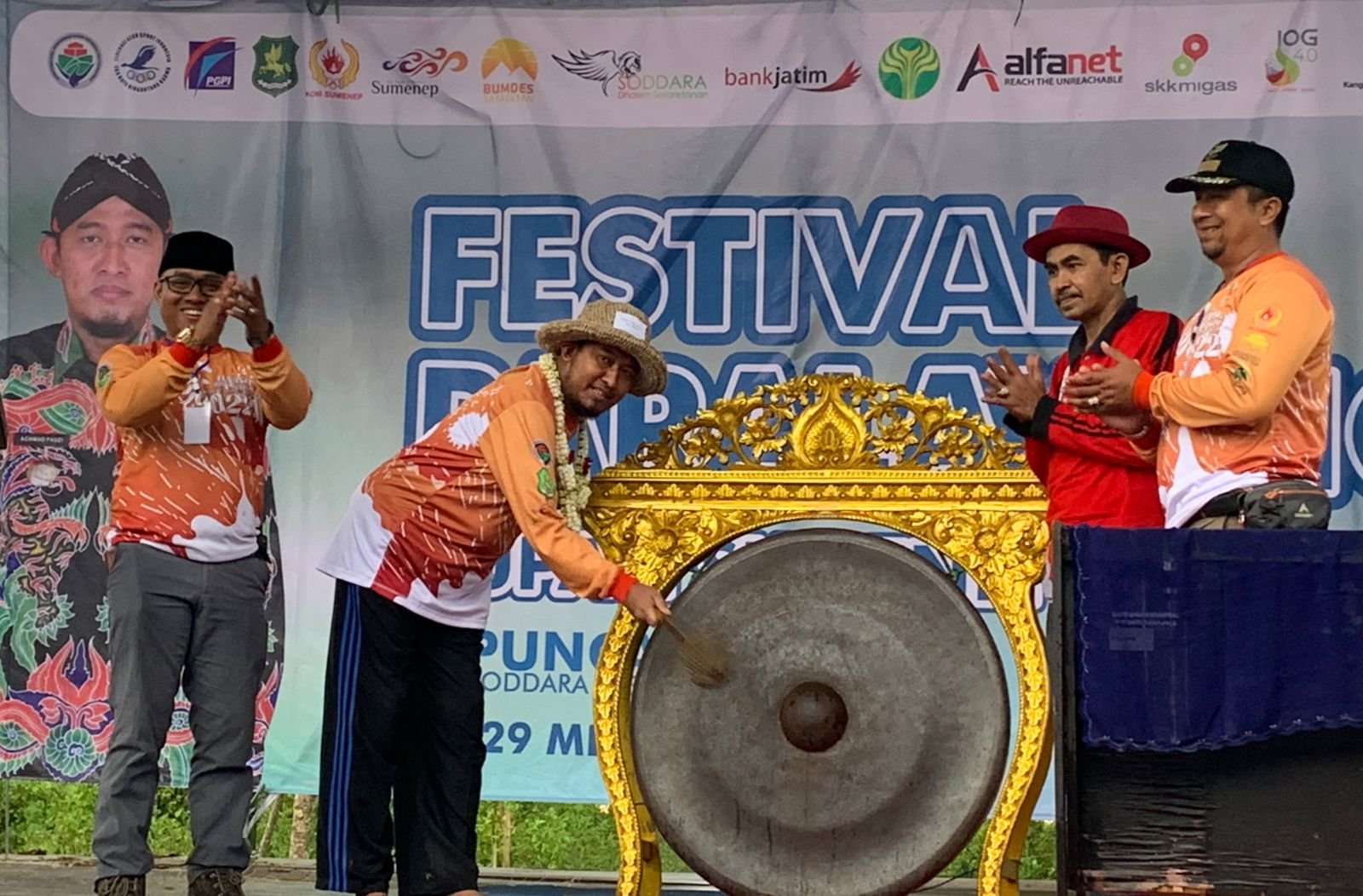 Sebelum meresmikan, Bupati Fauzi menghampiri dan mencicipi hidangan di stand BUMDes se-Sumenep yang ikut serta memeriahkan festival Paralayang se-Jawa Timur sekaligus menyantuni 8 anak yatim Desa setempat. Bupati Fauzi juga disambut dengan penampilan ojhung dan tarian muang sangkal. (Upek)