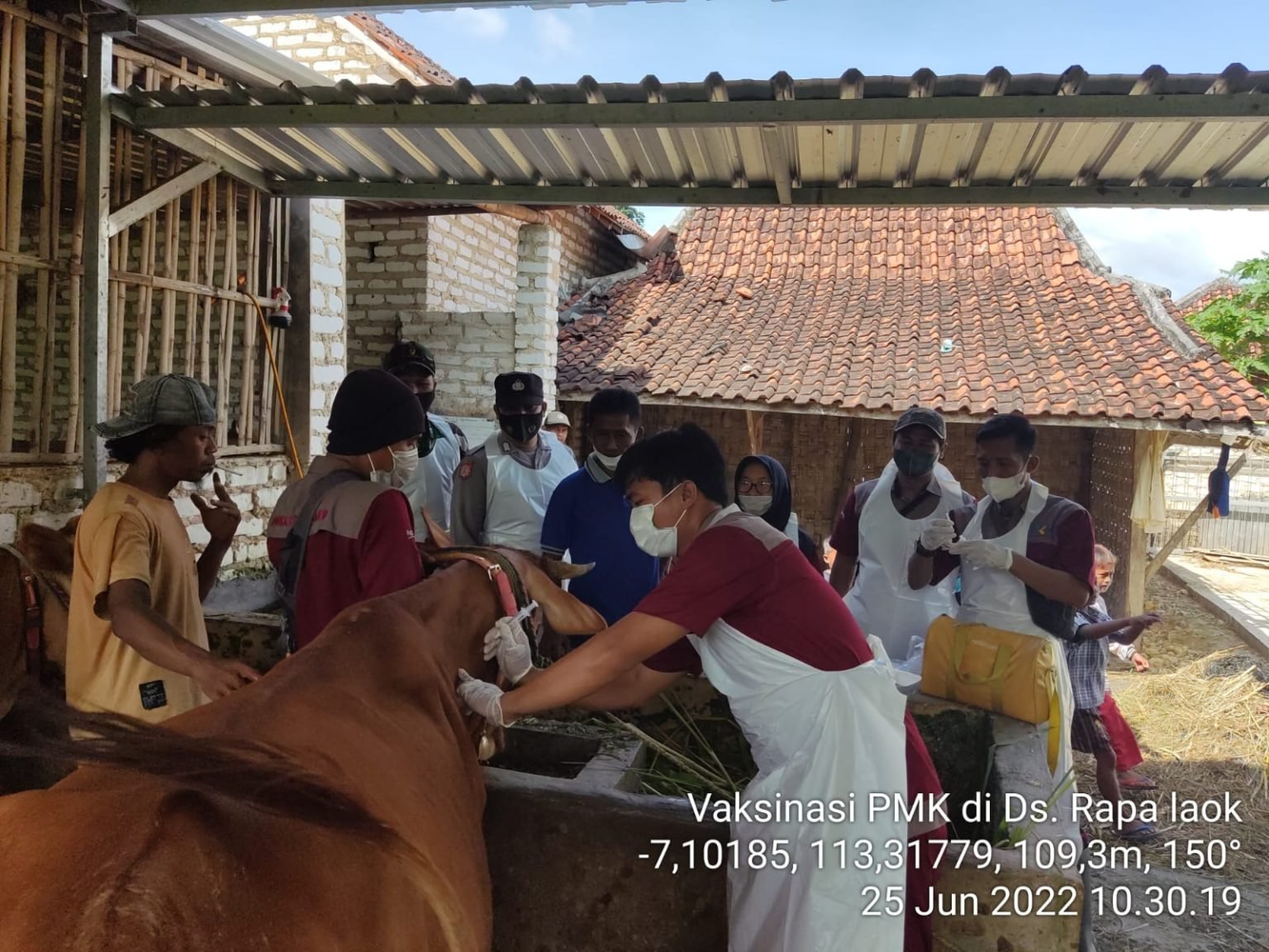 Kediaman P. Suparman menjadi tempat pertama penyuntikan vaksin penyakit mulut dan kuku (PMK) pada ternak sapi di Dusun Capo Desa Ragung, Target vaksin di desa ragung hari ini 100 sapi saat di temui bersama tim vaksinator.Sabtu 25 /6/2022.
