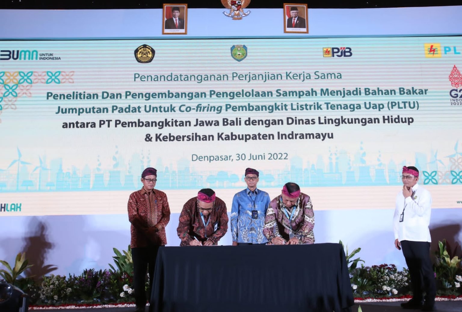 Badung, 2 Juli 2022 – PT PLN (Persero) melalui anak usahanya PT Pembangkitan Jawa Bali (PJB) menggandeng Pemerintah Kabupaten (pemkab) Indramayu untuk mengolah sampah menjadi biomassa yang dimanfaatkan sebagai bahan bakar pengganti batu bara (co-firing) di pembangkit listrik tenaga uap (PLTU) milik perseroan.
