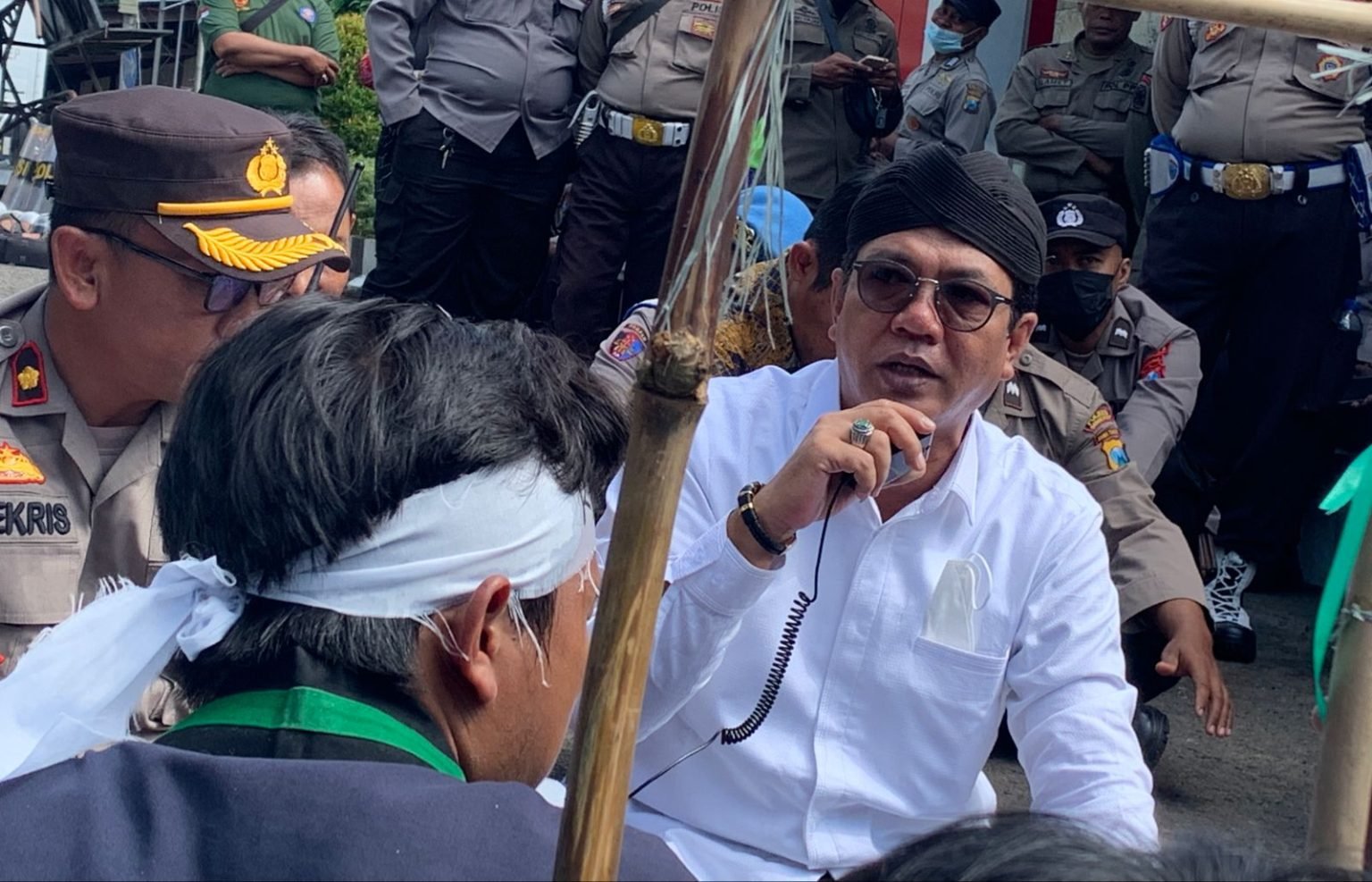 Penolakan itu dilakukan dengan pagelaran aksi demonstrasi di depan Kantor DPRD Jl. Trunojoyo, Kota Sumenep, Kamis (7/7). (Upek)