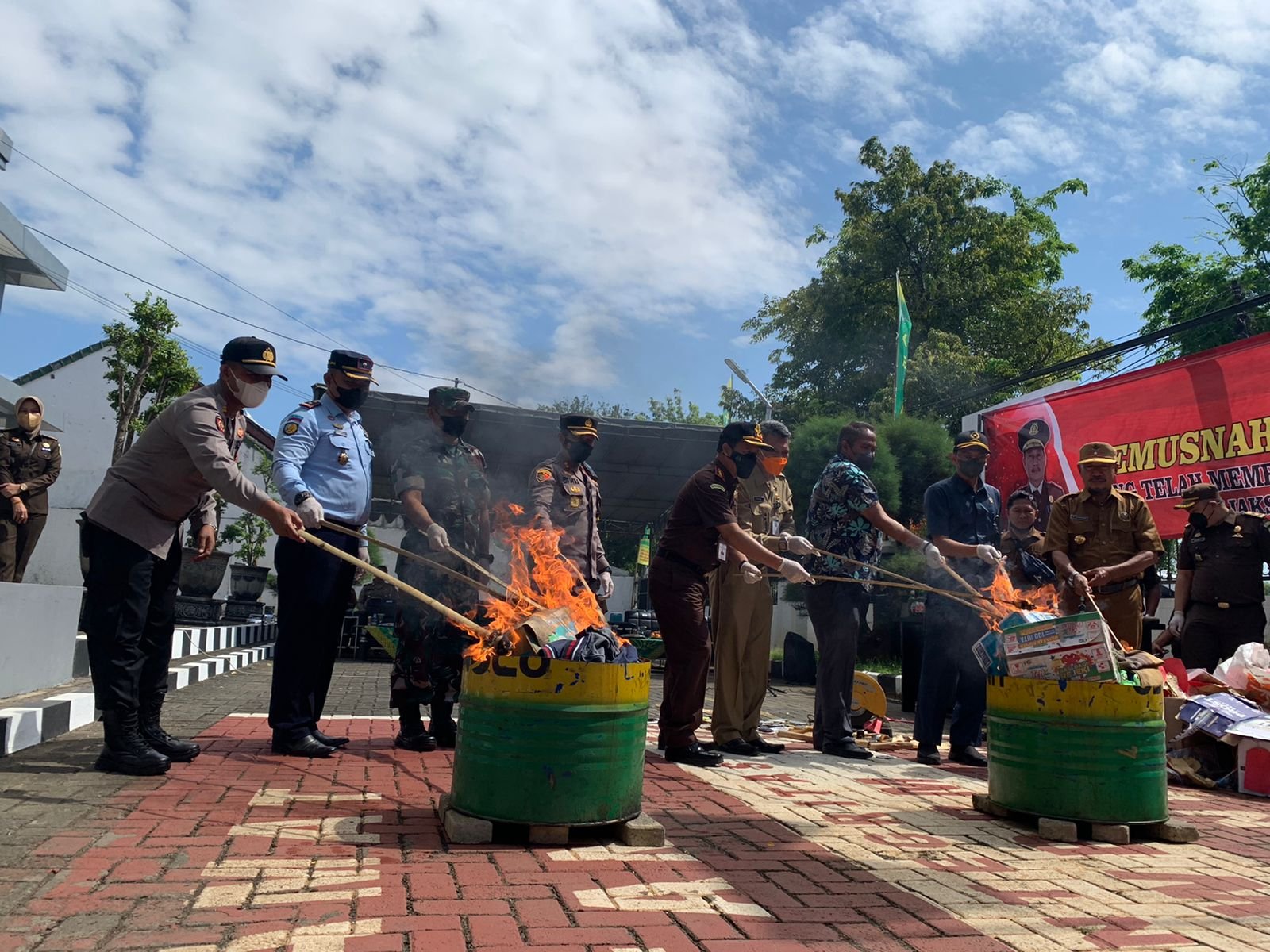 SURABAYAONLINE.CO | Sumenep – Kejaksaan Negeri (Kejari) Sumenep, Madura, Jawa Timur memusnahkan ratusan Barang Bukti (BB) hasil kejahatan yang dalam amar putusan telah dinyatakan incracht, Selasa (19/7).