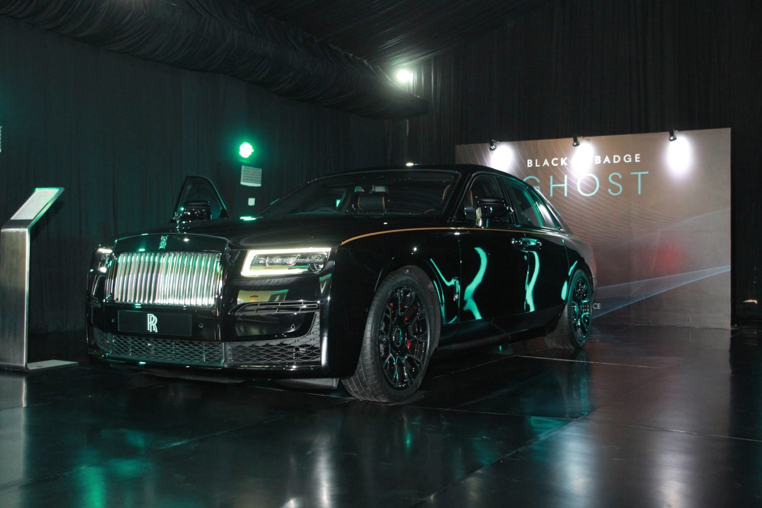 Black Badge pun mendapat sedikit sentuhan di sektor mesin. Jika RR Ghost pada umumnya hanya mampu menghasilkan 562 dk, Black Badge dibekali dengan 592 dk. Selain itu dari sisi exterior, ada dua buah garis yang melekat pada body samping mobil yang membuat tampilannya lebih dinamis dan sporty.