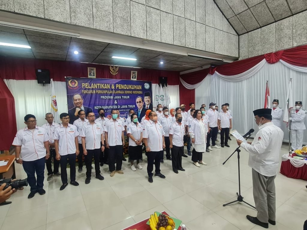 SURABAYAONLINE.CO – Pengurus wilayah Perkumpulan Olahraga Domino Indonesia (PORDI) Jawa Timur (Jatim), dilantik oleh Ketua Umum Pengurus Besar (PB) PORDI, Andi Jamaro Dulung, di Gedung KONI Jatim, Sabtu (20/8/2022).