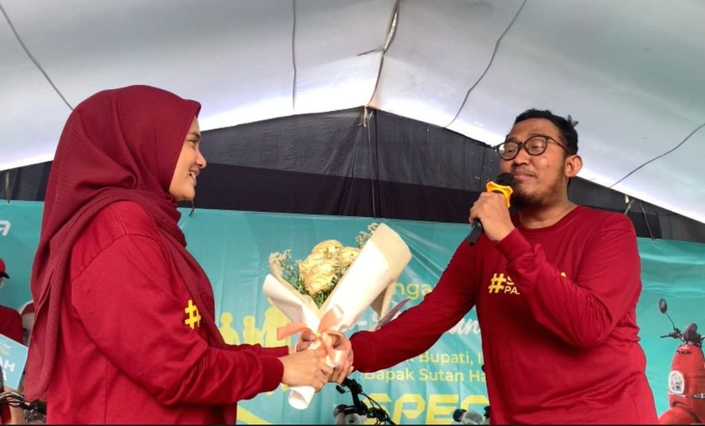 Saat panggilan itu dilontarkan, tampak terdengar sorakan Baper (Bawa Perasaan) dari para peserta. Bupati Achmad Fauzi dengan mantan pacarnya itupun tersenyum.