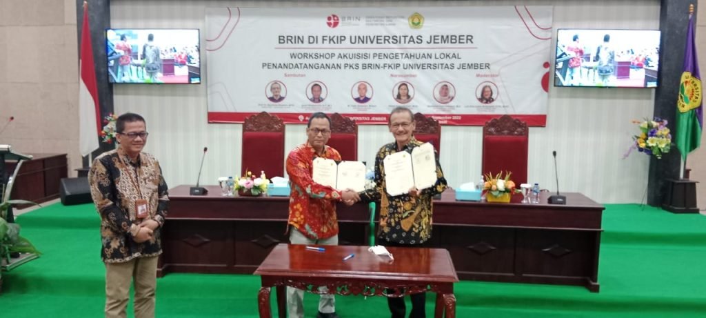 Kesepakatan pengambilalihan buku karya dosen FKIP tertuang dalam perjanjian kerjasama yang sudah ditandatangani pada tanggal 1 September 2022 lalu di kampus FKIP Universitas Jember. Dalam kesempatan tersebut pihak BRIN diwakili oleh Plt. Direktur Repositori, Multimedia dan Penerbit Ilmiah BRIN, Ayom Widipaminto. Penandatanganan perjanjian kerjasama ini juga disaksikan langsung oleh Rektor Universitas Jember. Dalam sambutannya, Ayom Widipaminto menyampaikan jika BRIN memiliki target menyebarluaskan 500 konten berbasis pengetahuan lokal baik berupa cetak maupun dalam bentuk audiovisual setiap tahunnya. Dan untuk tahun ini BRIN baru mengumpulkan 172 konten.