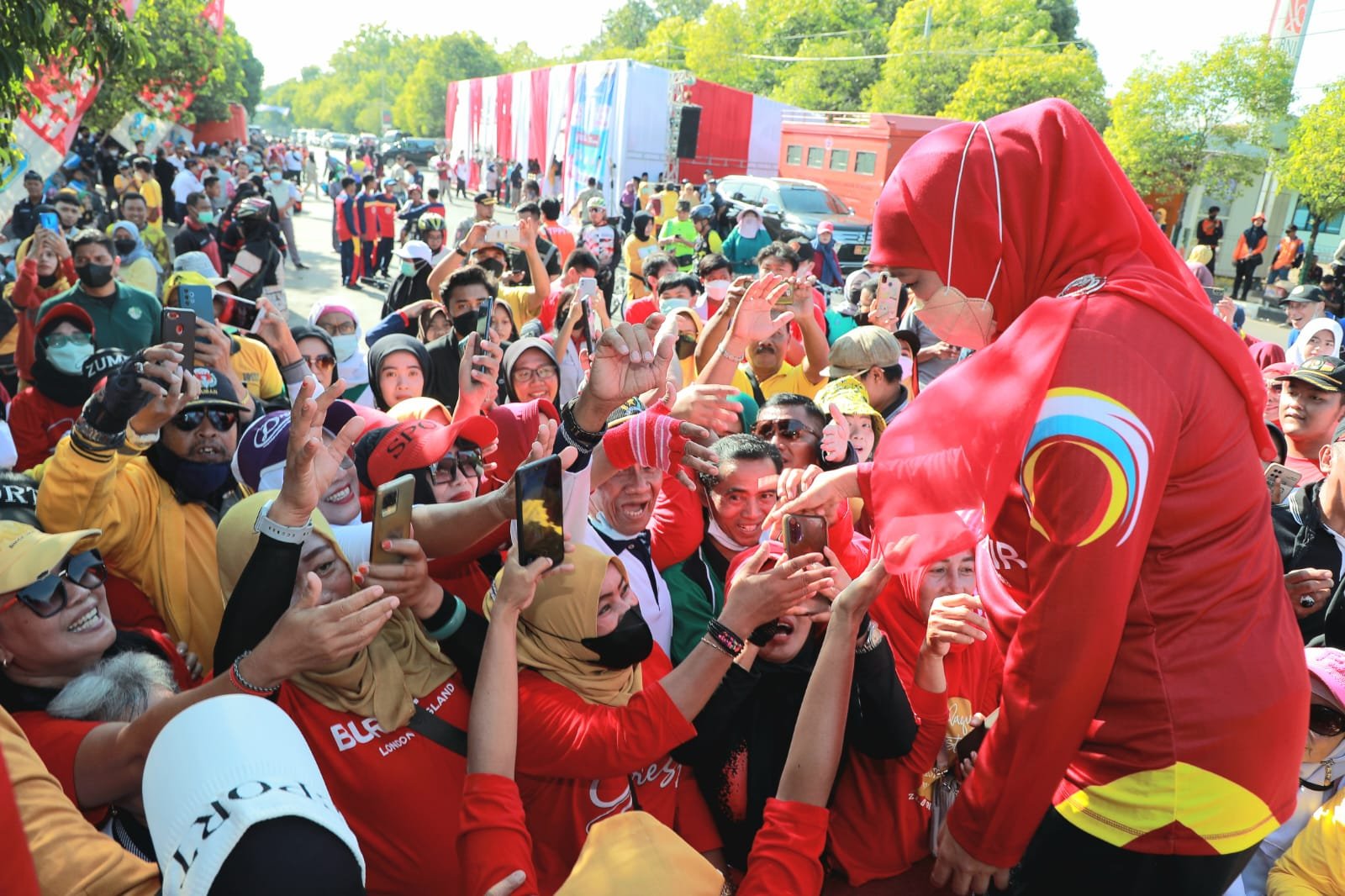 SURABAYAONLINE.CO – Gubernur Jawa Timur Khofifah Indar Parawansa hadir pada bakti sosial dalam rangka ulang tahun ke-50 Ikatan Alumni Universitas Airlangga (IKA Unair) di depan Markas Kompi Senapan C Jl. Sunan Kalijaga Kabupaten Tuban, Sabtu (24/9) pagi.