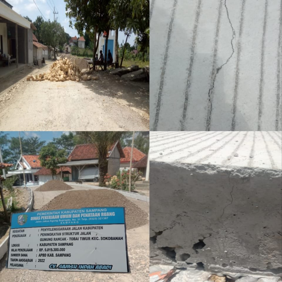 Pengerjaan betonisasi dari Desa Gunung Rancak hingga Desa Tobai Timur Kecamatan Sokobanah itu, dianggap tidak maksimal seperti pengerjaan betonisasi Yang ada sebelumnya.