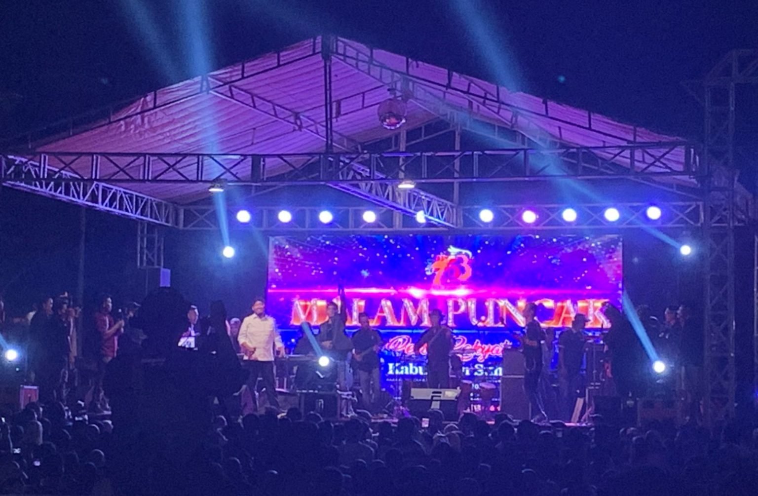 Masyarakat tampak memadati area Taman Bunga (TB) setempat. Mereka disuguhkan lagu ciptaan Bupati yang pertama ‘Mencintai Tanpa Dicintai’ dan single kedua ‘Sudah Ada Yang Baru’.