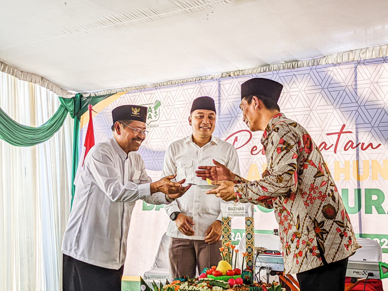 SURABAYAONLINE.CO – Dari sejak awal Pelantikan Ketua dan Wakil Ketua BAZNAS (Badan Amil Zakat Nasional) Kota Surabaya pada tahun 2021 kemarin dimana pelantikan tersebut untuk mengaktifkan kembali BAZNAS yang sebelumnya sempat vakum selama 7 tahun kini merayakan hari ulang tahunnya untuk yang pertama kali. Acara tersebut juga dihadiri oleh Walikota Surabaya Eri Cahyadi beserta para UPZ (Unit Pengumpulan Zakat) yang ada di Kota Surabaya. (25/10)