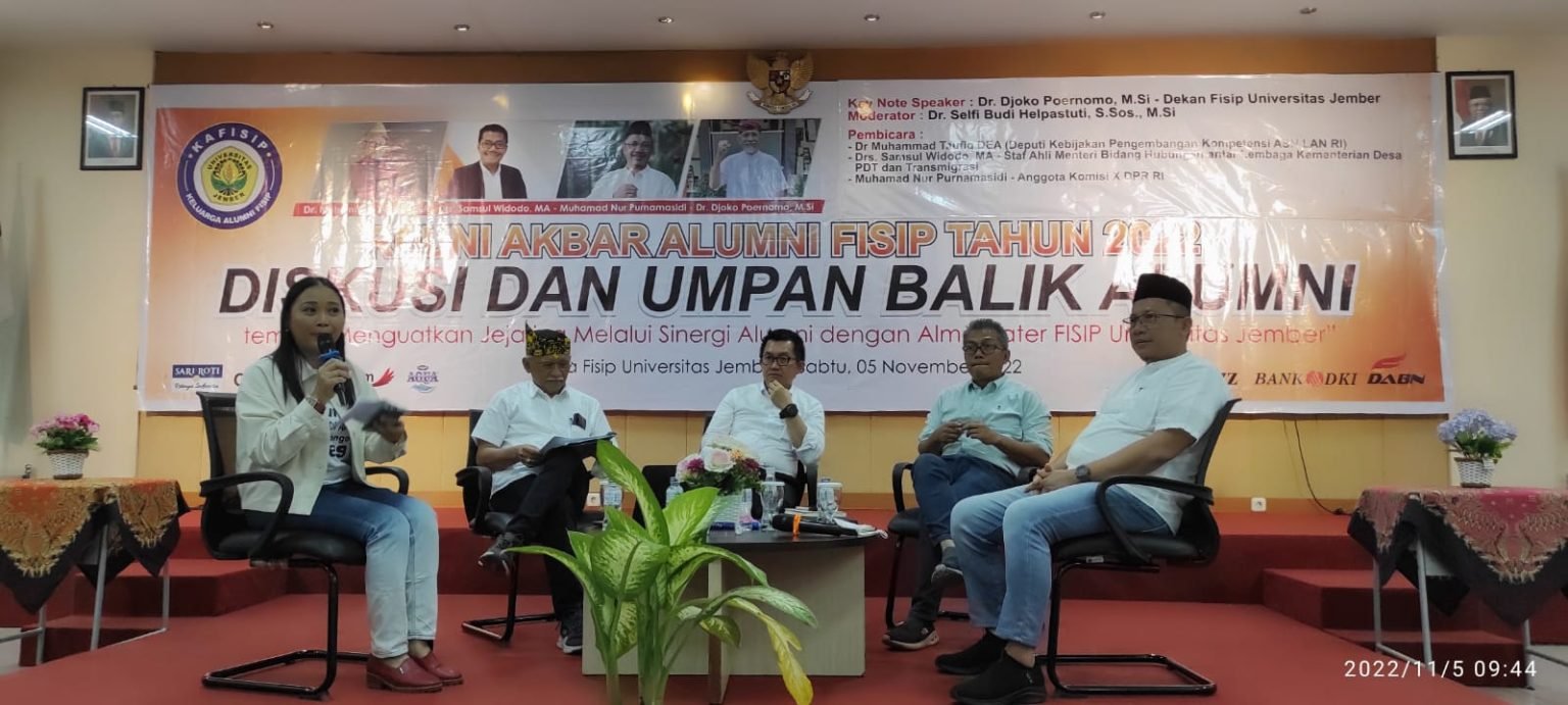 Reuni akbar alumni FISIP Unej itu dihadiri oleh 41 angkatan yang berasal dari tahun 1970-2011. Sebanyak 1300 alumni hadir memeriahkan kegiatan tersebut. Angkatan terbanyak yang datang berasal dari era tahun 1980, 1981 dan 1986. Agenda tersebut turut diisi oleh stan UMKM dari alumni sendiri. Namun, UMKM itu dibatasi sebanyak 15 unit.
