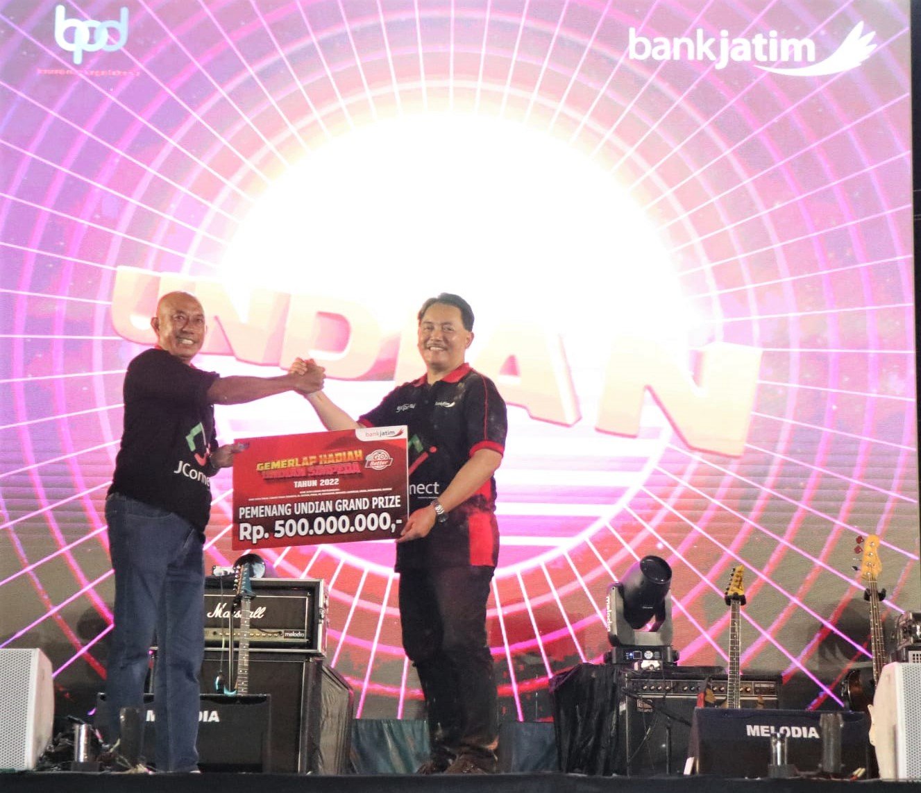 Dikatakannya, Bank Jatim mengundi total hadiah sebesar Rp6,65 miliar. Hadiah tersebut masing-masing senilai Rp 100 juta dan Rp 50 juta untuk nasabah di 41 Cabang Bank Jatim yang tersebar di Jawa Timur, Jakarta, dan Batam. “Serta hadiah grandprize Rp 500 juta untuk 1 nasabah Simpeda Bank Jatim yang beruntung pada malam ini,” ungkap Busrul Iman.