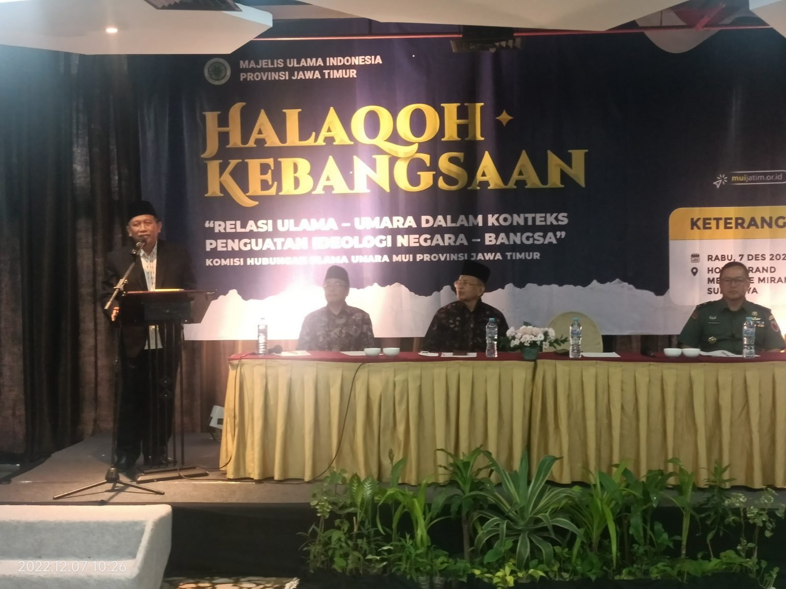 Acara yang bertajuk “Relasi Ulama-Umara Dalam Konteks Penguatan Ideologi Negara -Bangsa”,dihadiri para ulama dan perwakilan para ormas Islam dan dibuka oleh Wakil Ketua Umum MUI Jawa Timur, Prof. KH. Halim.