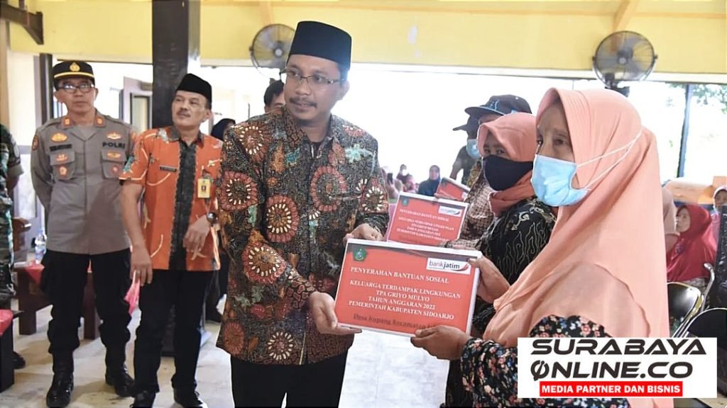 SURABAYAONLINE.CO, Sidoarjo–Sebanyak 3.599 warga Kecamatan Jabon mendapatkan Bantuan Sosial (Bansos) dari Pemkab Sidoarjo. Bansos tersebut diberikan kepada kepala keluarga di 4 desa yang tinggal dekat kawasan TPA (Tempat Pembuangan Akhir) Griyo Mulyo Jabon. Diantaranya Desa Kupang, Desa Tambak Kalisogo, Desa Semambung dan Desa Balongtani. Pagi tadi, Bansos berupa uang tersebut diserahkan secara simbolis oleh Bupati Sidoarjo H. Ahmad Muhdlor S.IP di Balai Desa Kupang Kecamatan Jabon, Jumat, (9/12).