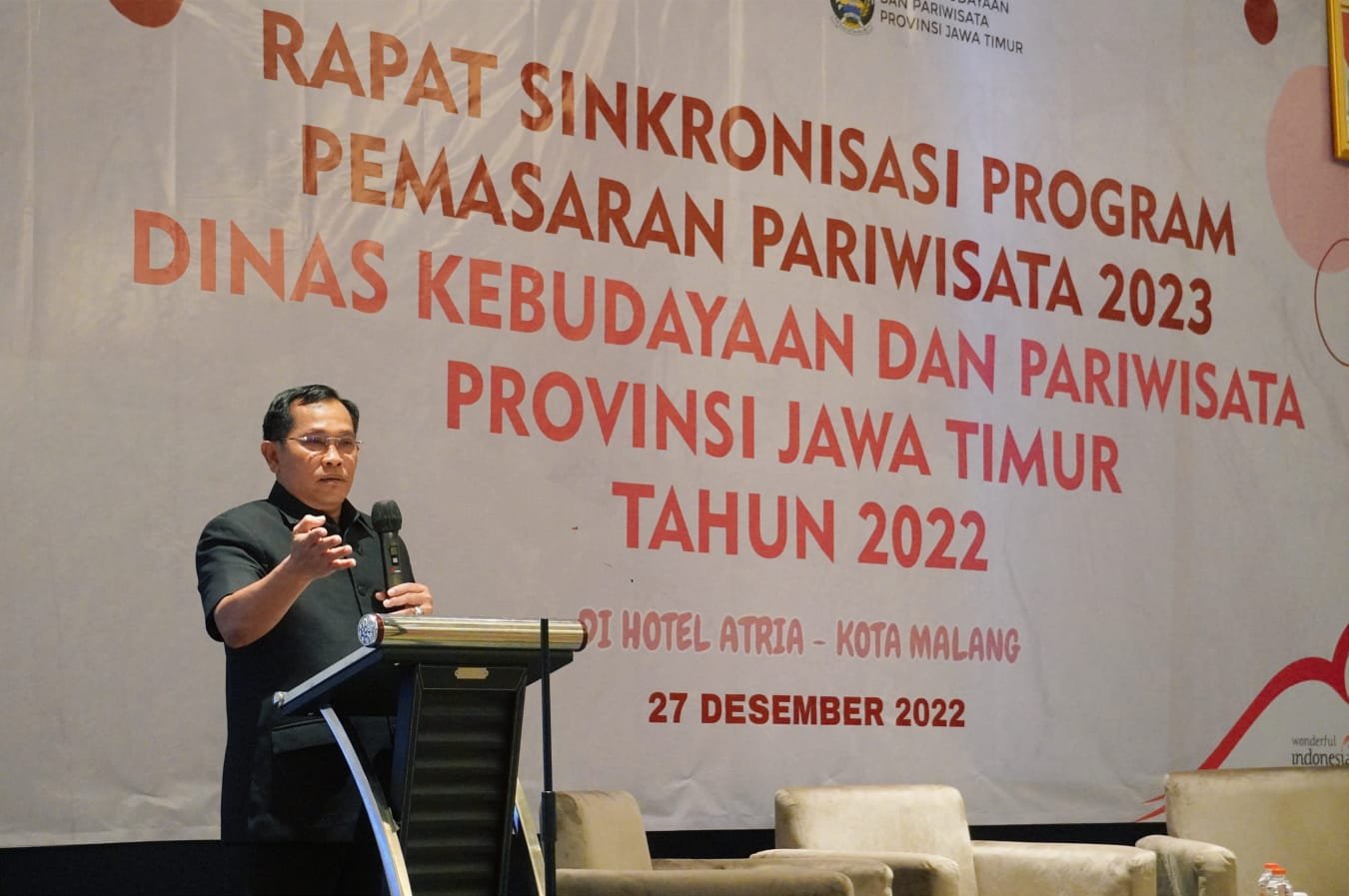 Itu disampaikan Kadisbudpar Jatim pada Rapat Sinkronisasi Program Pemasaran Pariwisata 2023 Dinas Kebudayaan dan Pariwisata Provinsi Jawa Timur tahun 2022 di Kota Malang, Selasa (27/12).