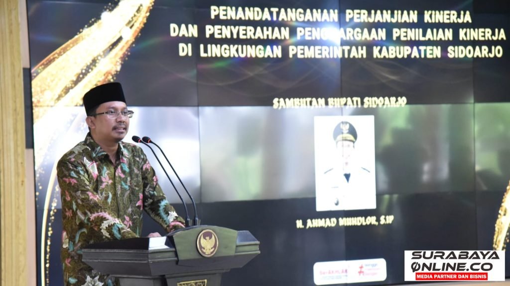SURABAYAONLINE.CO, Sidoarjo – Penghargaan evaluasi kinerja tahun 2022 diberikan Bupati Sidoarjo H. Ahmad Muhdlor S.IP kepada OPD Sidoarjo. Penilaian dilakukan mulai dari dinas, badan dan kantor kecamatan. Penilaiannya mencakup output dan outcome serta capaian zona integritas perangkat daerah itu sendiri. Output yang dinilai yakni rata-rata capaian kegiatan dan sub kegiatan serta realisasi anggaran. Sedangkan nilai outcome yakni capaian rata-rata program perangkat daerah dan capaian rata-rata indikator penunjang perangkat daerah serta nilai akuntabilitas.