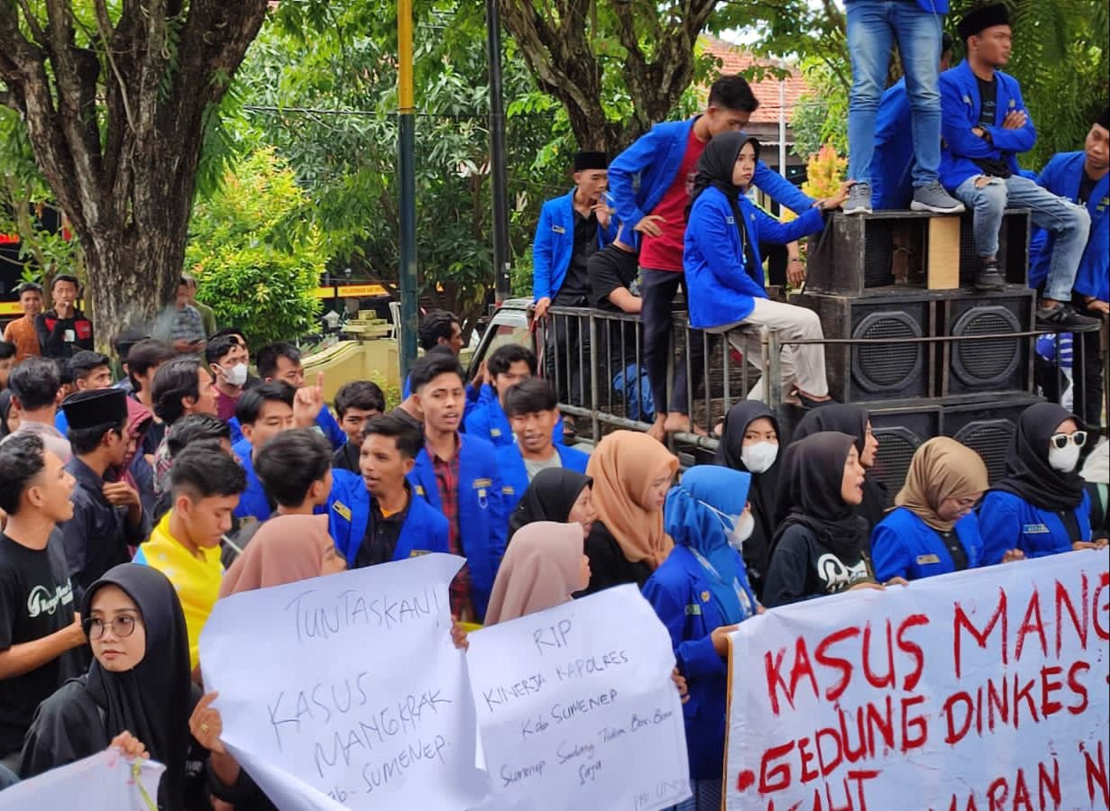Mereka menuntut beberapa kasus dugaan korupsi yang sampai saat ini dinilai mangkrak alias tak ada kejelasan dari pihak berwajib yakni Polres Sumenep.