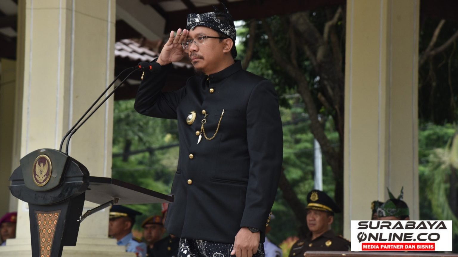 SURABAYAONLINE.CO, Sidoarjo – Upacara Hari Jadi Kabupaten Sidoarjo (Harjasda) ke 164 tahun 2023 dipimpin oleh Bupati Sidoarjo H. Ahmad Muhdlor S.IP. Selasa, (31/01/2023) di Alun-alun Sidoarjo. Dalam sambutannya, Bupati Sidoarjo H. Ahmad Muhdlor Ali menyampaikan terimakasih yang sebesar-besarnya kepada para pejuang dan para bupati yang pernah memimpin Kabupaten Sidoarjo. Menurutnya beragam keberhasilan pembangunan saat ini tidak terlepas dari kerja keras para pendahulunya. Pembangunan Kabupaten Sidoarjo diwarnai tetesan keringat dan perjuangan para pejuang dan para bupati yang pernah memimpin Sidoarjo.