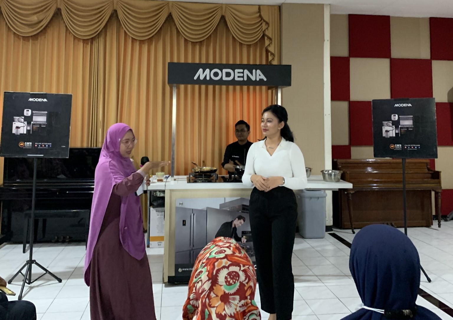 Dalam workshop kuliner MODENA, Branch Manager Modena Kediri Vincentius Gema kembali mengenalkan benefit dari inovasi produk professional yang mampu mendukung UMKM dari segi produksi untuk mengolah makanan, penyimpanan bahan masakan beku, pengepakan, dan display minuman dingin.