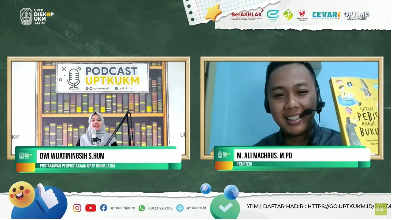 SURABAYAONLINE.CO – Unit Pelaksana Teknis Pelatihan Koperasi dan Usaha Kecil dan Menengah Provinsi Jawa Timur (UPTP K-UKM Jatim) mengadakan webinar Literasi Perpustakaan dengan tema “Rahasia Meningkatkan Cuan Bagi Pebisnis Millenial”, Jumat (17/2).