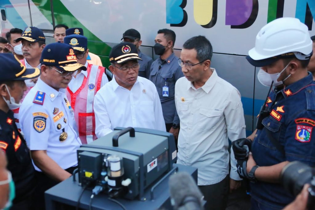 Menko PMK didampingi Menteri Perhubungan Budi Karya Sumadi, Pj Gubernur DKI Jakarta Heru Budi Hartono, Kakorlantas Polri Irjen Pol Firman Santyabudi, dan Kepala Dinas Perhubungan DKI Jakarta Syafrin Liputo.