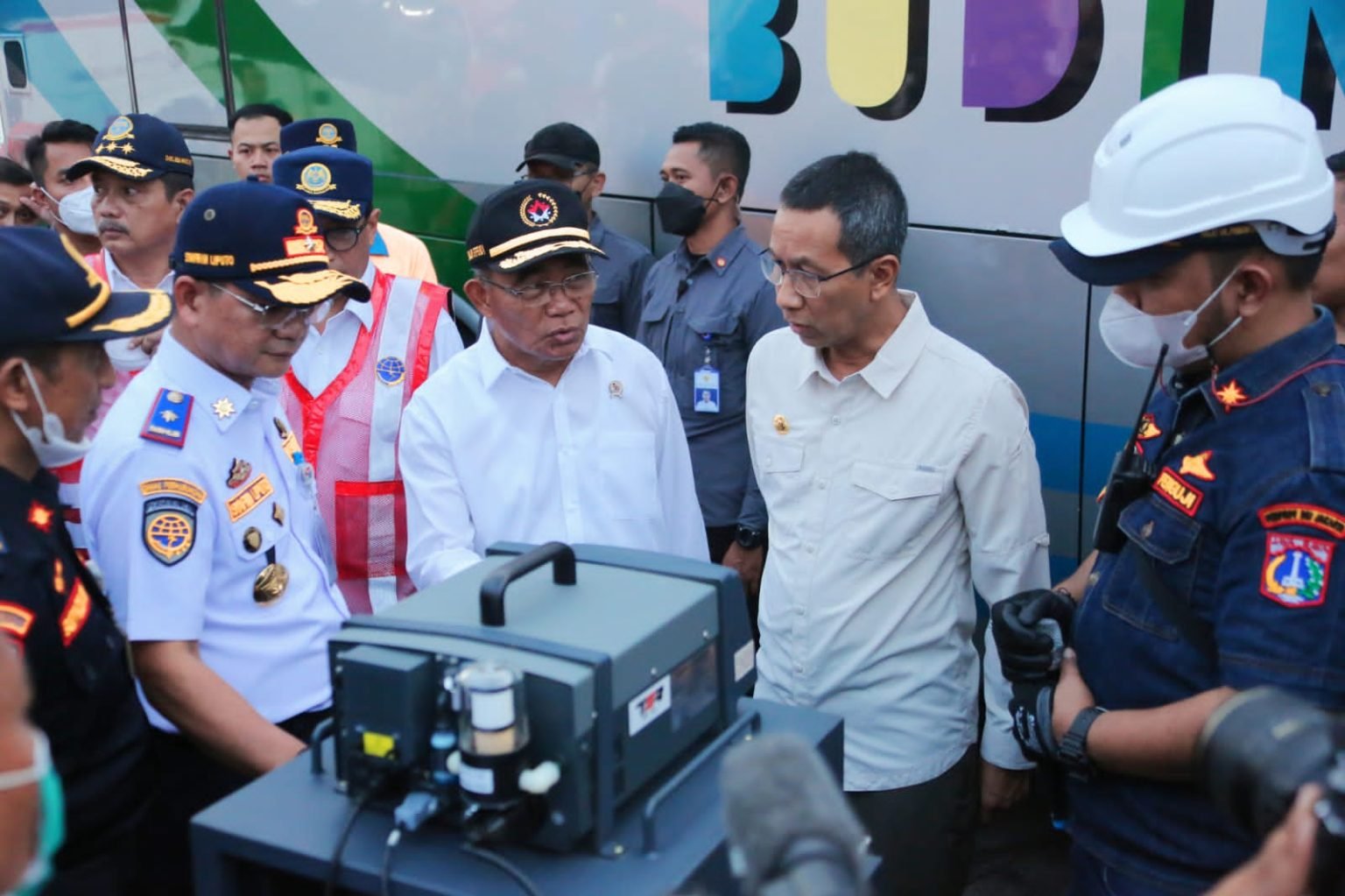 Menko PMK didampingi Menteri Perhubungan Budi Karya Sumadi, Pj Gubernur DKI Jakarta Heru Budi Hartono, Kakorlantas Polri Irjen Pol Firman Santyabudi, dan Kepala Dinas Perhubungan DKI Jakarta Syafrin Liputo.