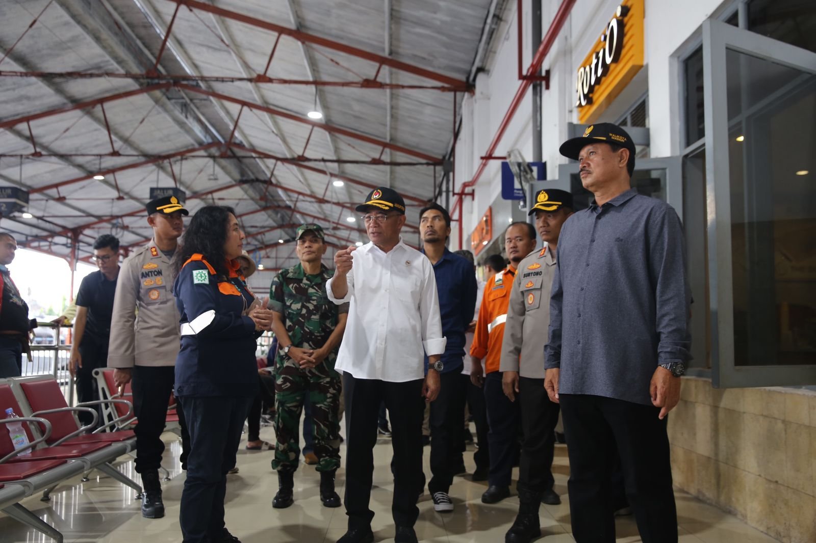 Menko PMK Muhadjir Effendy meninjau Stasiun KA Madiun untuk cek kesiapan menghadapi arus mudik Idul Fitri 2023un Maidi, Kapolres Madiun AKBP Anton Prasetyo, ia melakukan peninjauan di dua lokasi, yaitu di Kantor Jasa Marga Ngawi Kertosono, Gerbang Tol Madiun, dan Stasiun Kereta Api Madiun.
