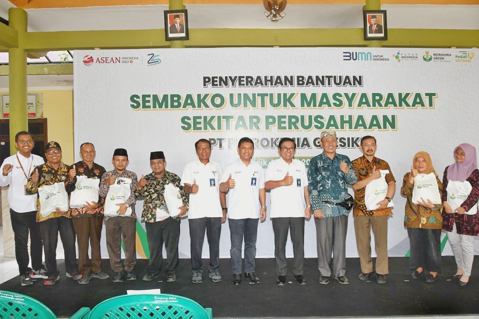 Adapun paket sembako yang dibagikan Petrokimia Gresik yaitu 5 kilogram beras dan 1 liter minyak. Bantuan tersebut dibagikan untuk desa/kelurahan sekitar perusahaan, diantaranya Desa Roomo, Kel. Tlogopojok, Lumpur, Karangturi, Karangpoh, Sukorame, Kroman dan Kel. Ngipik