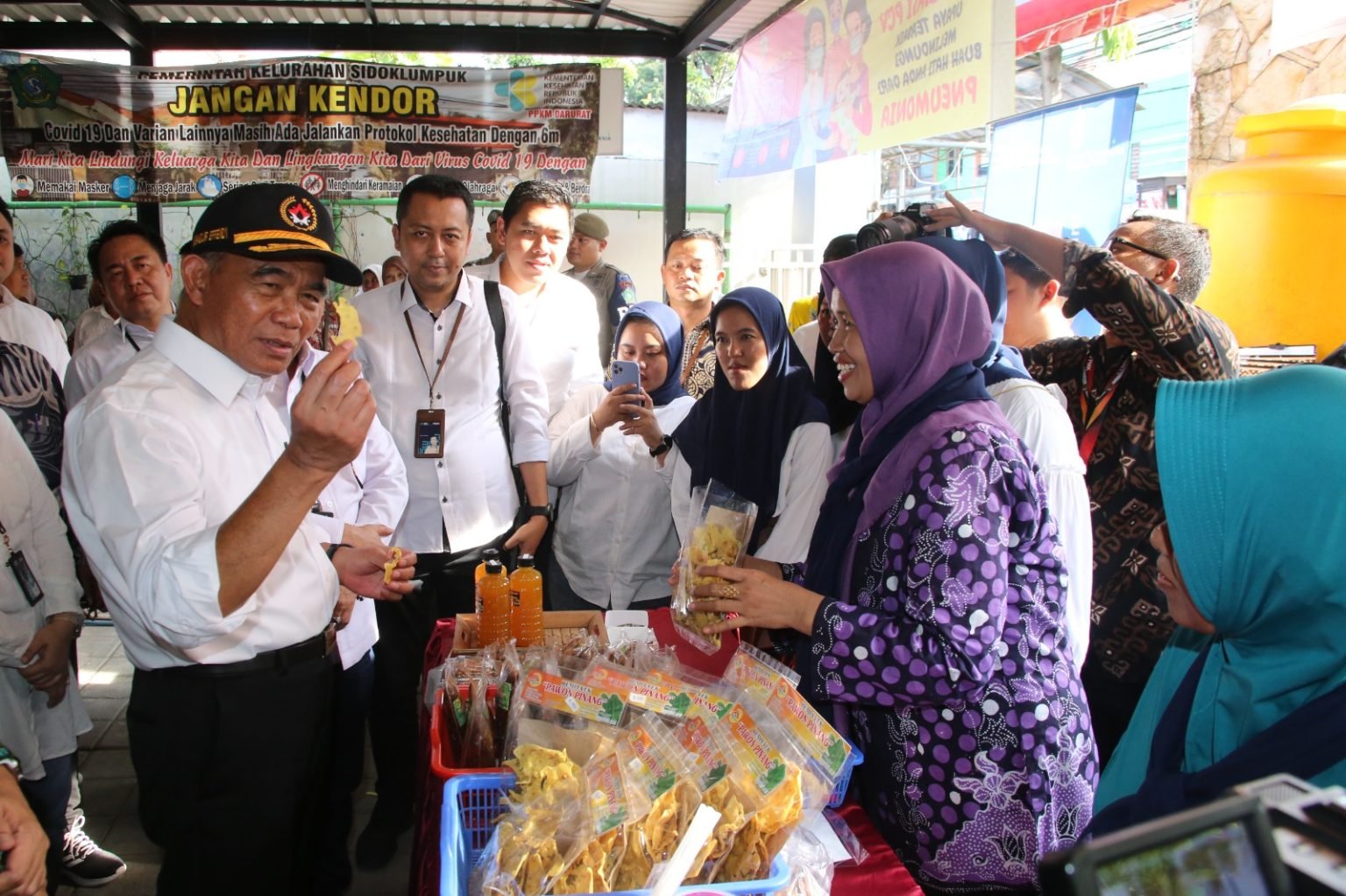 Didampingi Direktur Utama PT PNM Arief Mulyadi, Muhadjir meninjau stand berbagai hasil produk usaha seperti makanan ringan, minuman, dan kerajinan tangan. PNM Membina Ekonomi Keluarga Sejahtera (PNM Mekaar) merupakan layanan pinjaman modal untuk perempuan prasejahtera pelaku UMKM yang diluncurkan pada 2015.