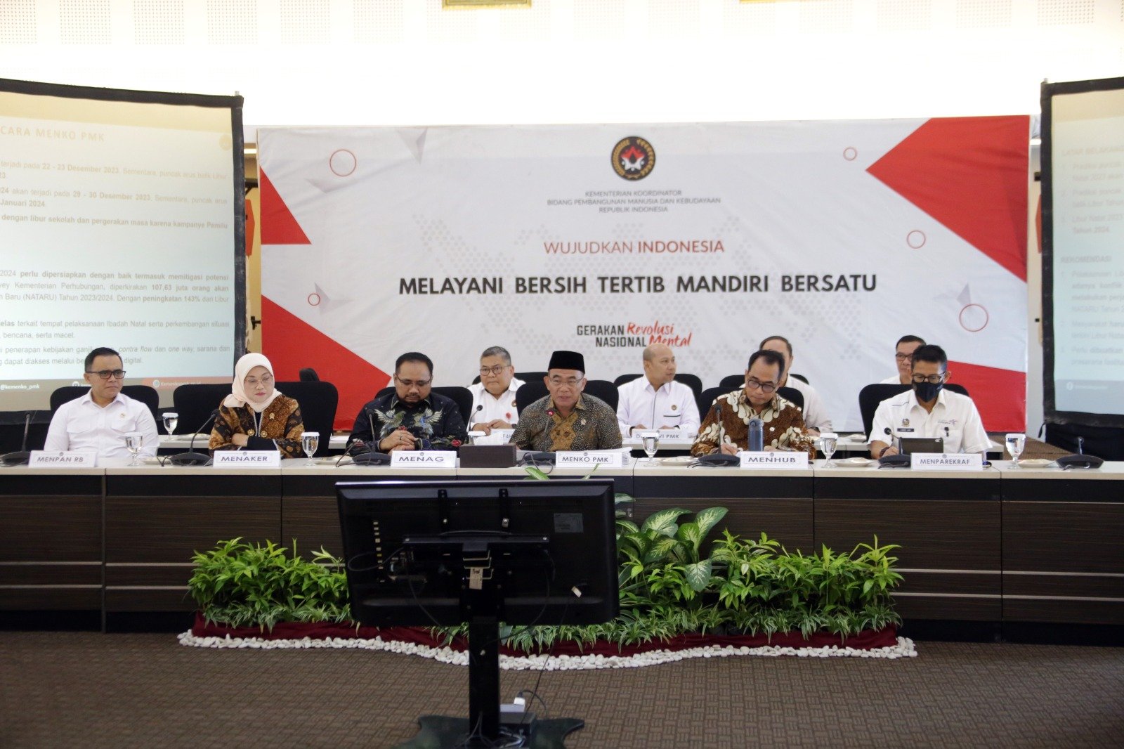 Hal tersebut disampaikan Menko PMK pada Rapat Tingkat Menteri (RTM) Persiapan Natal 2023 dan Tahunan Baru 2024, di Ruang Rapat Lantai 14, Kantor Kemenko PMK, pada Senin (11/12/2023).