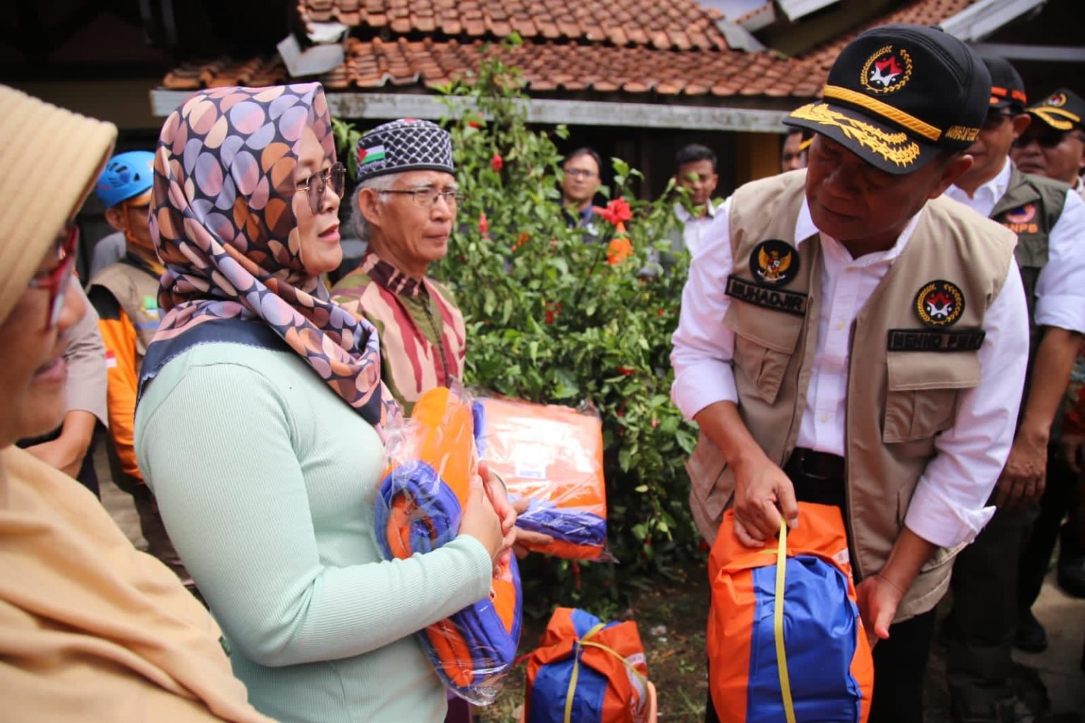 SURABAYAONLINE.CO, Sumedang – Menteri Koordinator Bidang Pembangunan Manusia dan Kebudayaan (Menko PMK) Muhadjir Effendy mewakili Presiden Joko Widodo menyerahkan bantuan stimulan kepada korban yang mengalami kerusakan rumah akibat bencana alam gempa bumi di Sumedang, Jawa Barat, pada Jumat (5/1).