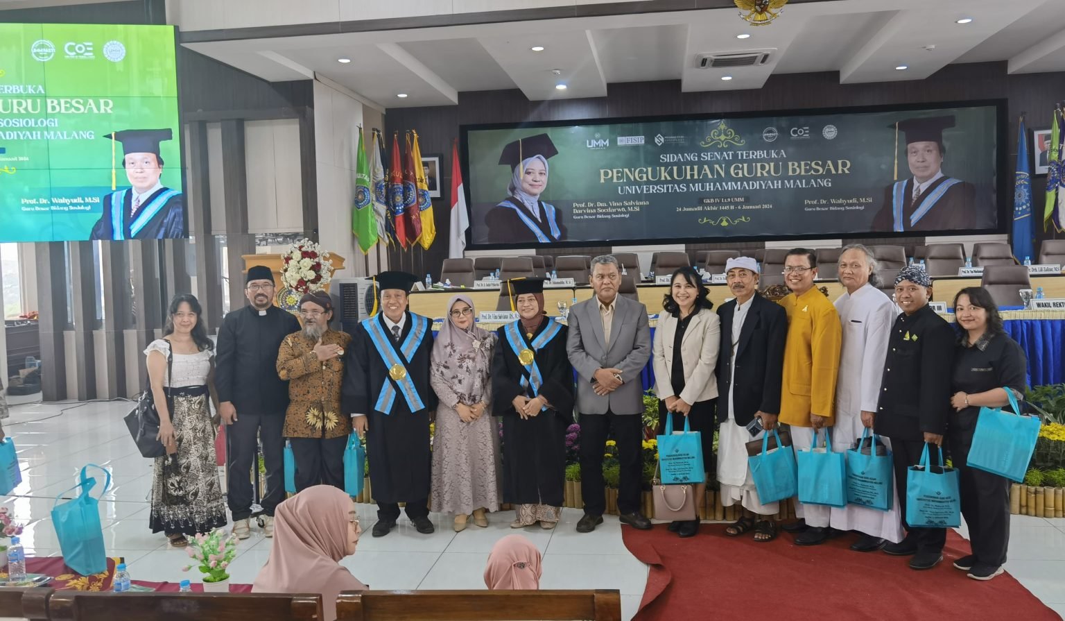Dua orang guru besar sosiologi yang dikukuhkan dalam kesempatan tersebut yaitu: Prof. Dr. Dra. Vina Salviana Darvina Soedarwo, M.Si, dan Prof. Dr. Wahyudi M.Si. keduanya telah lama berkecimpung di dunia akademik dan merupakan akademisi senior di UMM.
