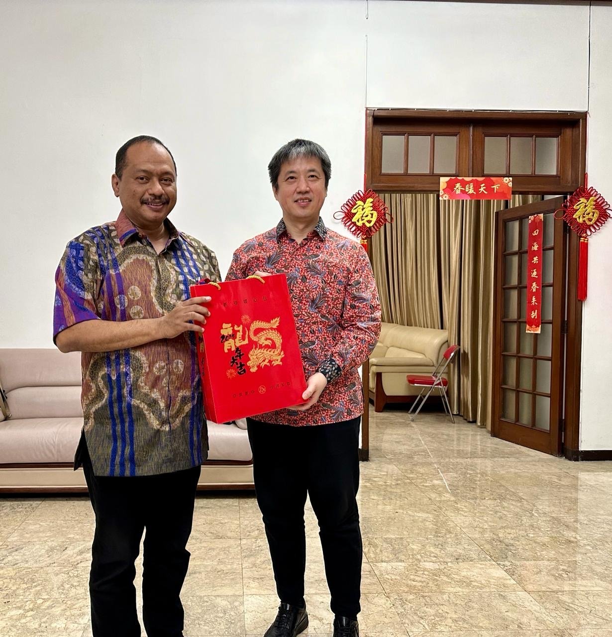 Tak sekadar berbincang soal olahraga, KONI Jatim mendapat kehormatan dari Konjen China yang memperkenalkan budaya musik China yakni Guzheng dan seni kaligrafi China.