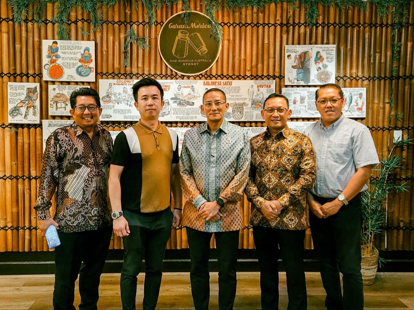 SURABAYAONLINE.CO,Sydney- Menteri Pariwisata dan Ekonomi Kreatif Sandiaga Uno beserta Bapak Vedi Kurnia Buana selaku Konjen RI di Sydney menyempatkan waktunya untuk makan siang di restaurant Halal Garam Merica Sydney yang terkenal dengan Nasi Bungkus ala warung di Sydney.