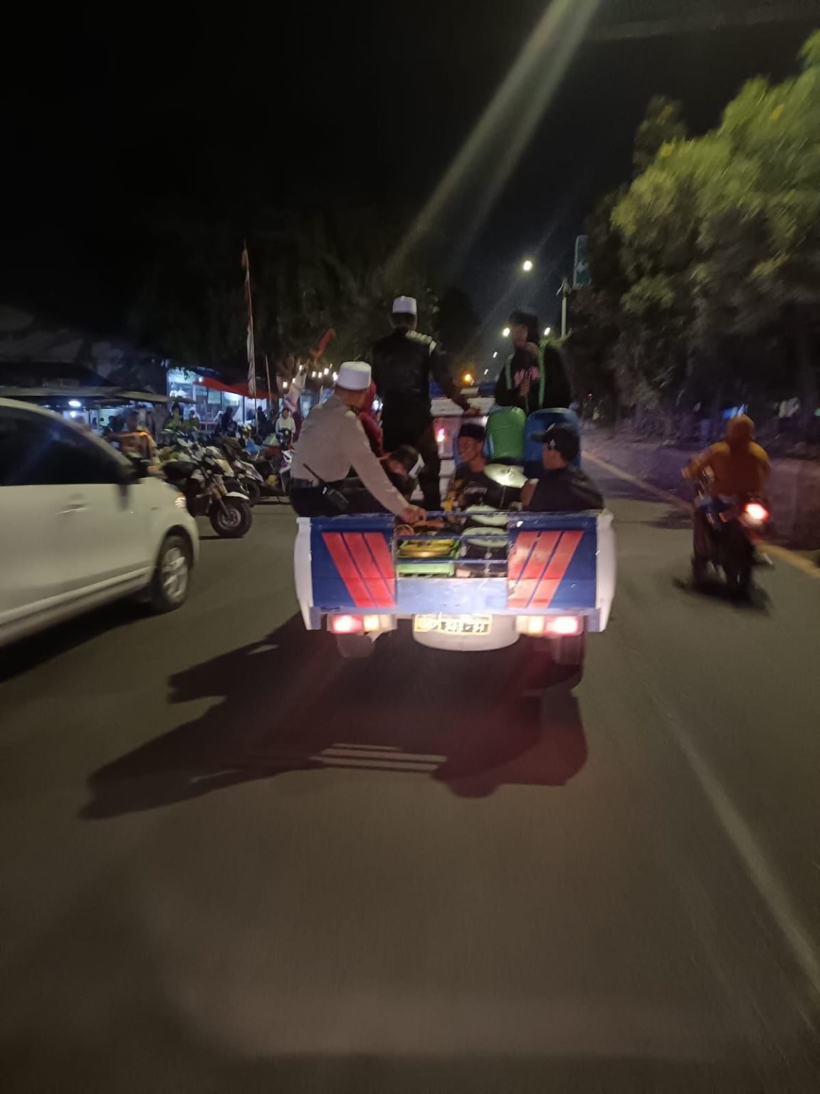 Dengan menggunakan satu mobil patroli polsek dan satu mobil pick up dinas lalu lintas, mereka berkeliling melakukan patroli kamtibmas sambil membangunkan warga untuk sahur.