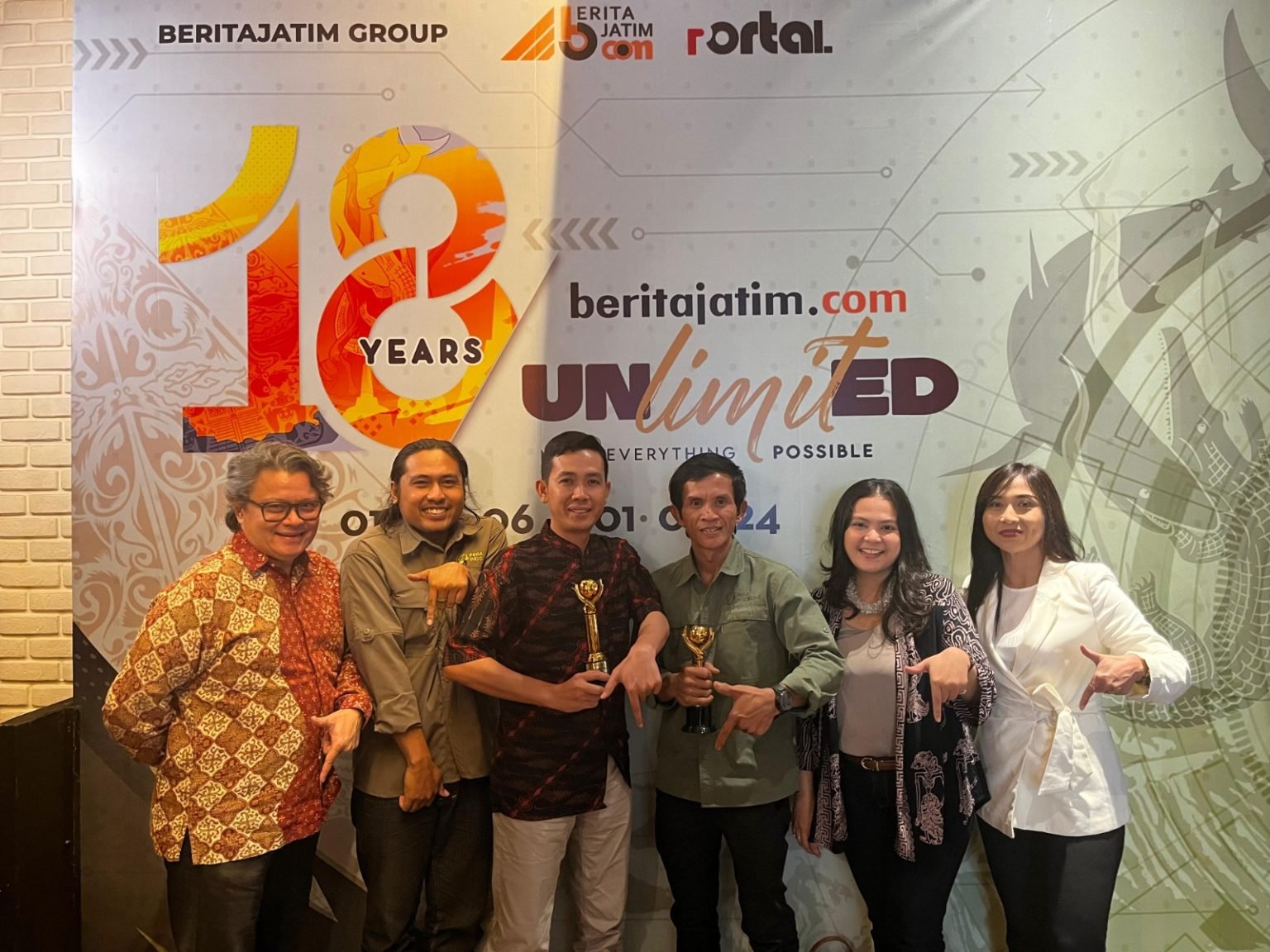 Penghargaan tersebut diterima langsung oleh Sundarianto dan Manajer Government Affairs PT BSI Iwa Mulyawan dalam puncak acara puncak Hari Ulang Tahun Ke-18 beritajatim.com di Whiz Luxe Hotel Spazio Surabaya, pada Kamis, (2/5/2024)