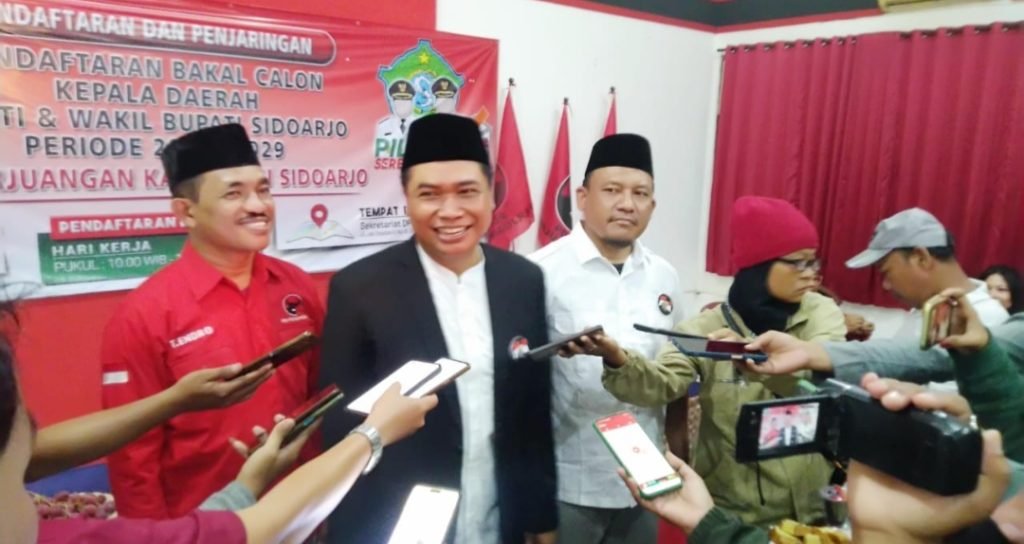 H Sugiono mengatakan bahwa ia telah menyerahkan berkas perlengkapan dan seluruh persyaratan pencalonan di DPC PDIP Sidoarjo. “Bismillah saya mendaftarkan diri menjadi calon bupati melalui PDIP.”